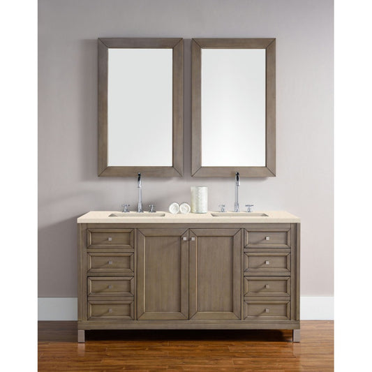 Chicago 60" Double Vanity, Whitewashed Walnut w/ 3 CM Eternal Marfil Quartz Top