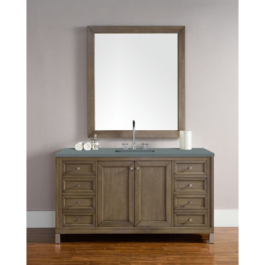 Chicago 60" Single Vanity, Whitewashed Walnut w/ 3 CM Classic White Quartz Top