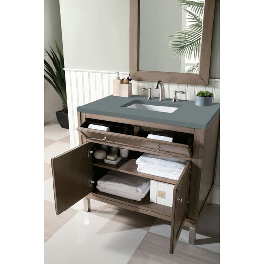 Chicago 36" Single Vanity, Whitewashed Walnut w/ 3 CM Gray Expo Quartz Top