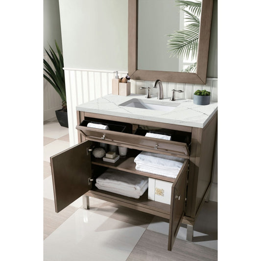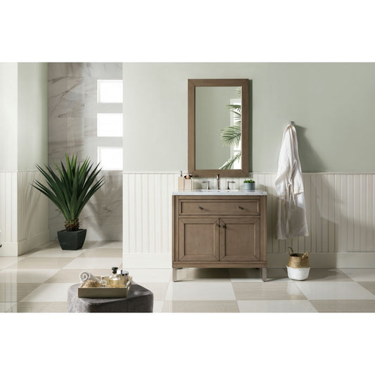 Chicago 36" Single Vanity, Whitewashed Walnut w/ 3 CM Eternal Serena Quartz Top