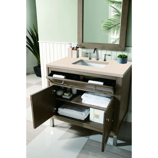 Chicago 36" Single Vanity, Whitewashed Walnut w/ 3 CM Eternal Marfil Quartz Top