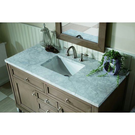 Chicago 48" Single Vanity, Whitewashed Walnut w/ 3 CM Carrara Marble Top