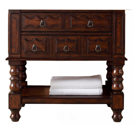 Castilian 36" Aged Cognac Single Vanity w/ 3 CM Arctic Fall Solid Surface Top