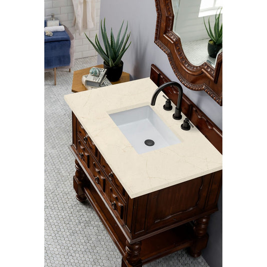 Castilian 36" Single Vanity, Aged Cognac, w/ 3 CM Eternal Marfil Quartz Top