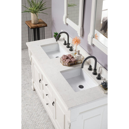 Brookfield 60" Double Vanity Bright White w/ 3 CM Jasmine Pearl Quartz Top