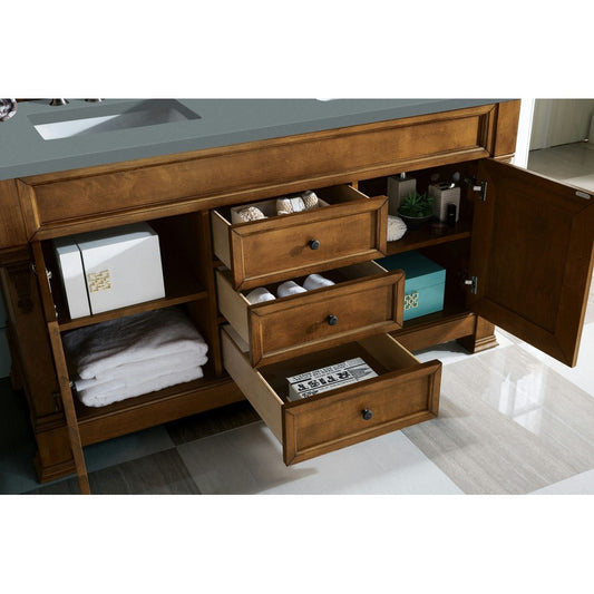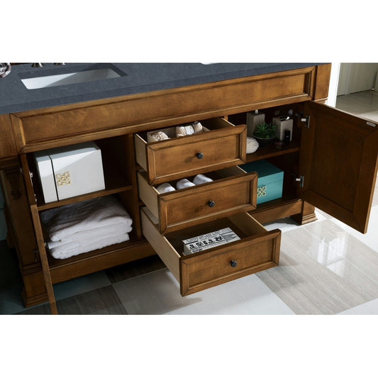 Brookfield 60" Double Vanity, Country Oak w/ 3 CM Charcoal Soapstone Quartz Top