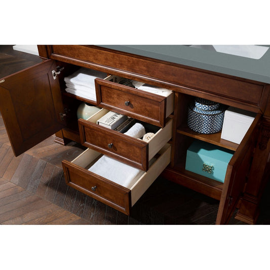 Brookfield 60" Double Vanity, Warm Cherry w/ 3 CM Gray Expo Quartz Top