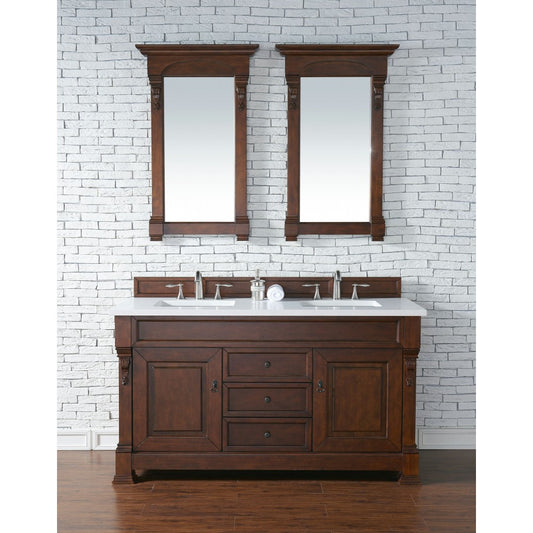 Brookfield 60" Double Vanity, Warm Cherry w/ 3 CM Classic White Quartz Top