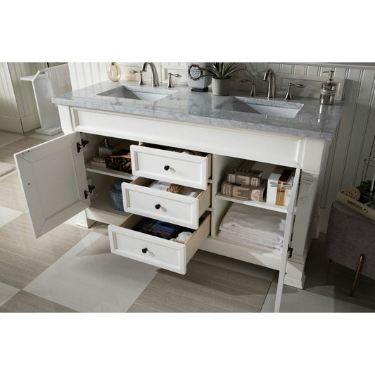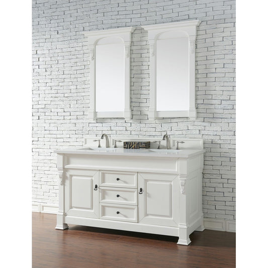 Brookfield 60" Double Vanity, Bright White w/ 3 CM Carrara Marble Top