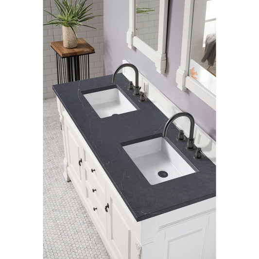 Brookfield 60" Double Vanity, Bright White w/ 3 CM Charcoal Soapstone Quartz Top
