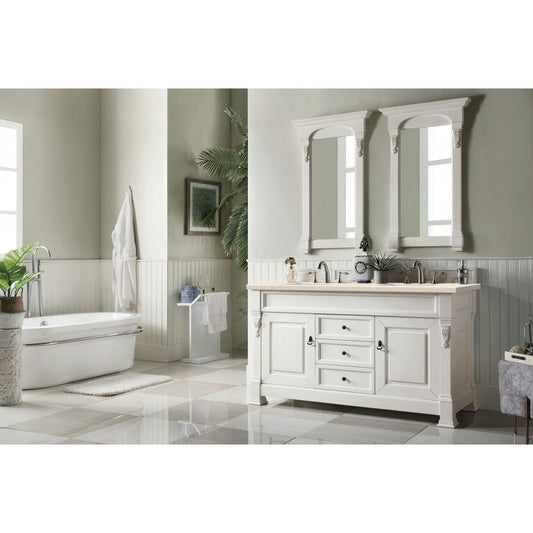 Brookfield 60" Double Vanity, Bright White w/ 3 CM Eternal Marfil Quartz Top