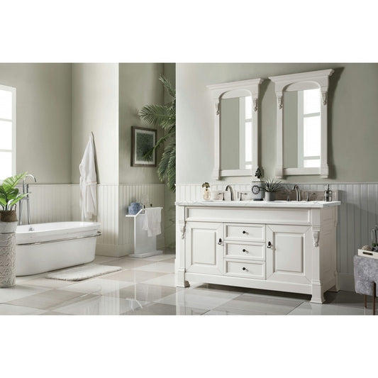 Brookfield 60" Double Vanity, Bright White w/ 3 CM Eternal Serena Quartz Top