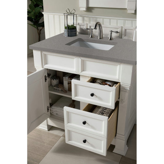 Brookfield 36" Single Vanity, Bright White w/ 3 CM Gray Expo Quartz Top
