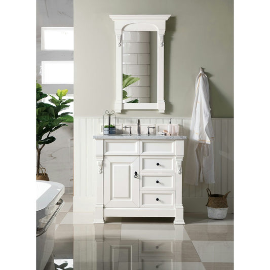Brookfield 36" Single Vanity, Bright White w/ 3 CM Carrara Marble Top