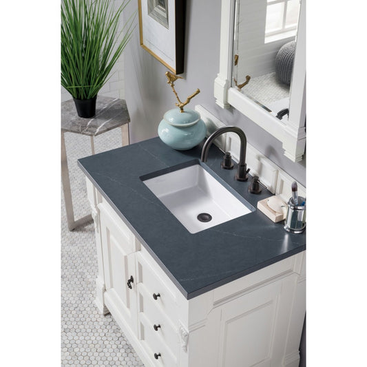 Brookfield 36" Single Vanity, Bright White w/ 3 CM Charcoal Soapstone Quartz Top