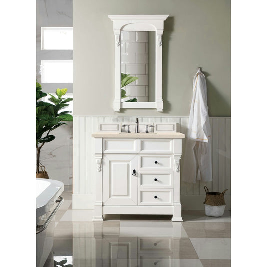 Brookfield 36" Single Vanity, Bright White w/ 3 CM Eternal Marfil Quartz Top