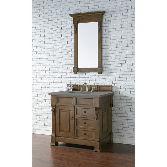 Brookfield 36" Single Vanity, Country Oak w/ 3 CM Gray Expo Quartz Top