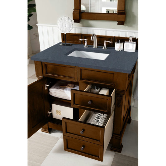 Brookfield 36" Single Vanity, Country Oak w/ 3 CM Charcoal Soapstone Quartz Top