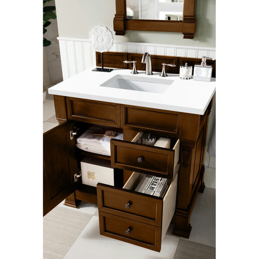 Brookfield 36" Single Vanity, Country Oak w/ 3 CM Classic White Quartz Top