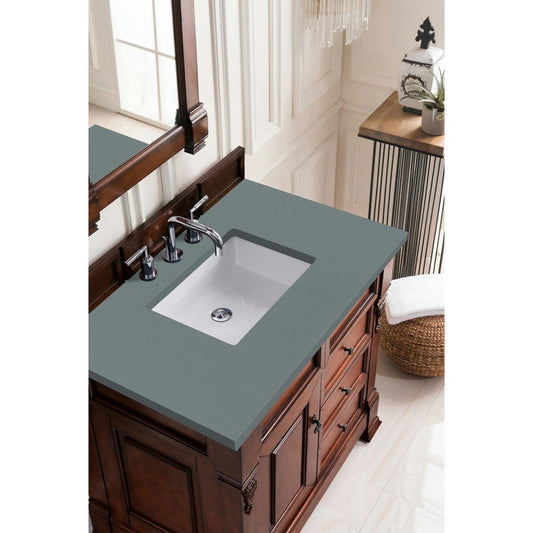 Brookfield 36" Single Vanity, Burnished Mahogany w/ 3 CM Gray Expo Quartz Top
