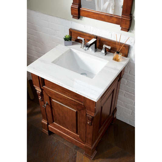Brookfield 26" Single Vanity, Warm Cherry w/ 3 CM Carrara Marble Top