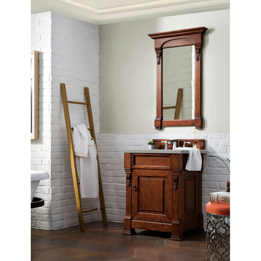 Brookfield 26" Single Vanity, Warm Cherry w/ 3 CM Classic White Quartz Top