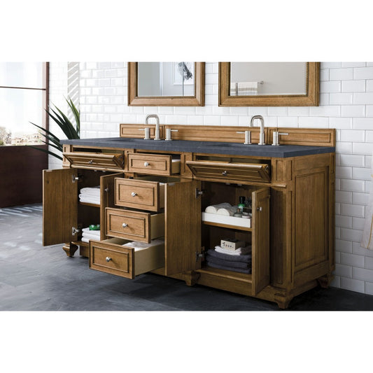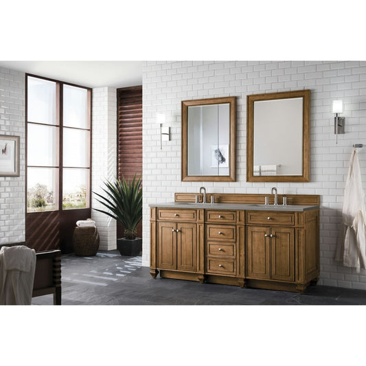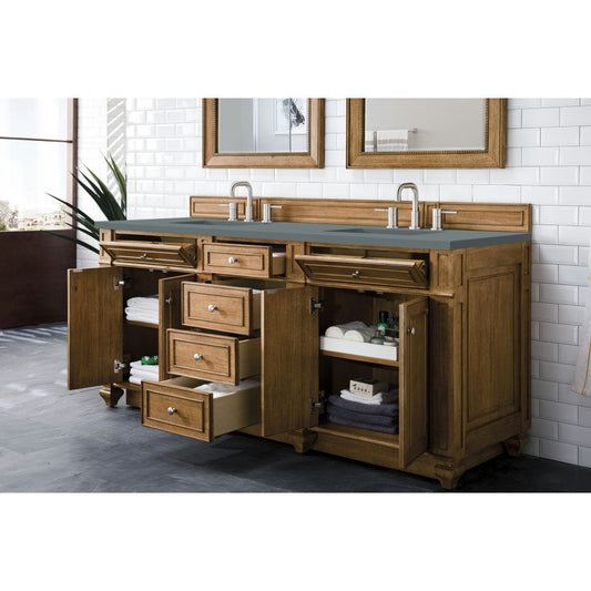 Bristol 72" Double Vanity, Saddle Brown, w/ 3 CM Gray Expo Quartz Top