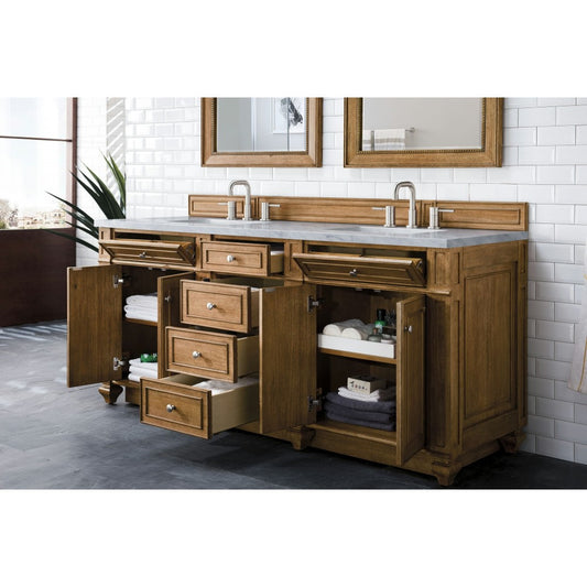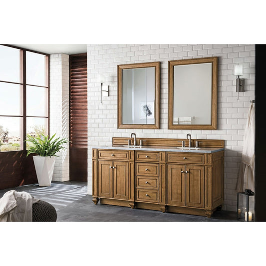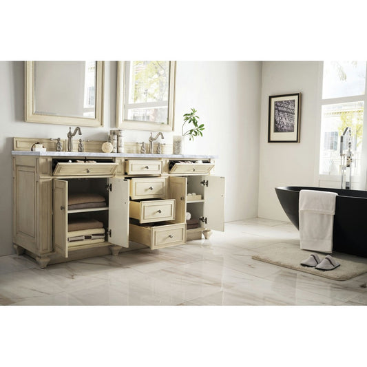Bristol 72" Double Vanity, Vintage Vanilla, w/ 3 CM Carrara Marble Top