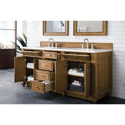 Bristol 72" Double Vanity, Saddle Brown, w/ 3 CM Classic White Quartz Top