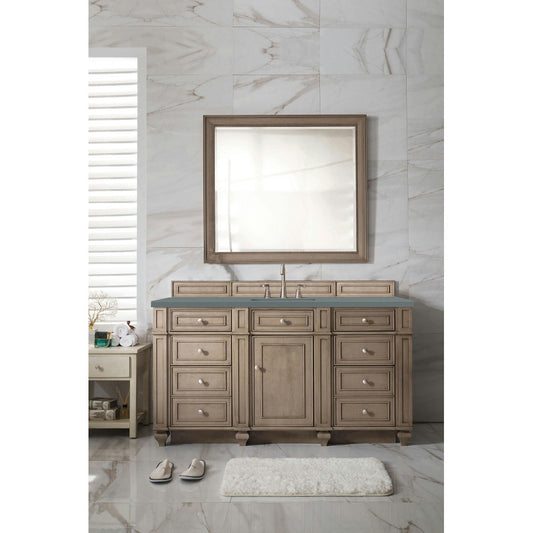 Bristol 60" Single Vanity, Whitewashed Walnut, w/ 3 CM Gray Expo Quartz Top