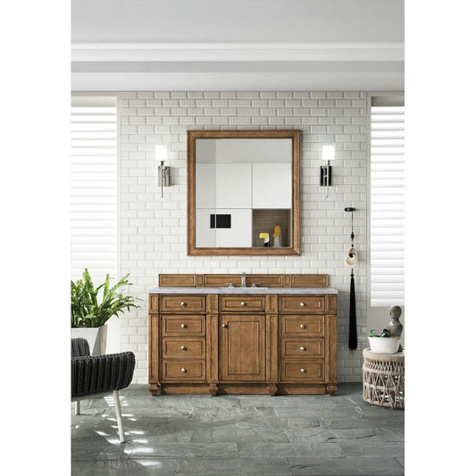 Bristol 60" Single Vanity, Saddle Brown, w/ 3 CM Eternal Marfil Quartz Top