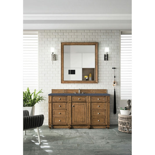 Bristol 60" Single Vanity, Saddle Brown, w/ 3 CM Gray Expo Quartz Top