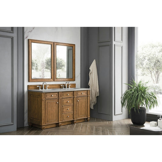 Bristol 60" Double Vanity, Whitewashed Walnut, w/ 3 CM Eternal Marfil Quartz Top