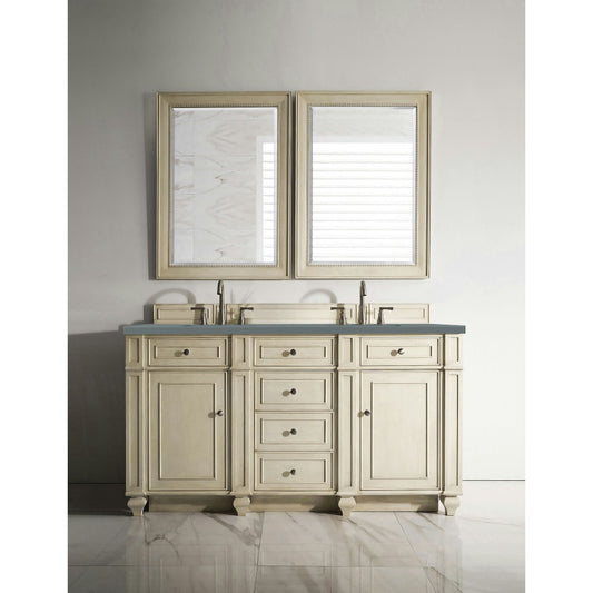 Bristol 60" Double Vanity, Vintage Vanilla, w/ 3 CM Gray Expo Quartz Top