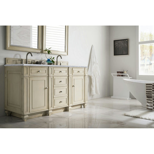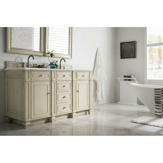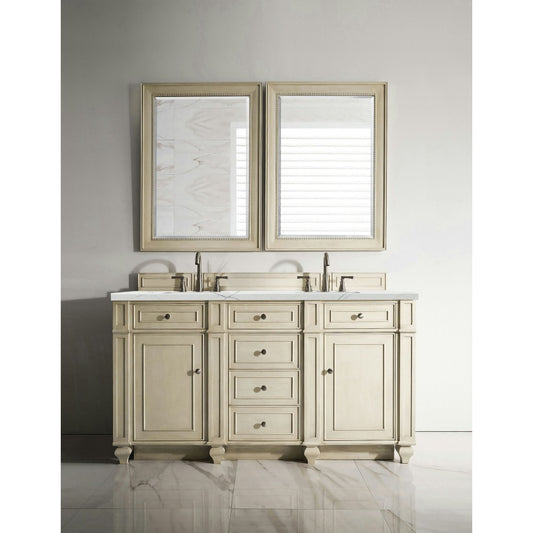 Bristol 60" Double Vanity, Vintage Vanilla, w/ 3 CM Carrara Marble Top