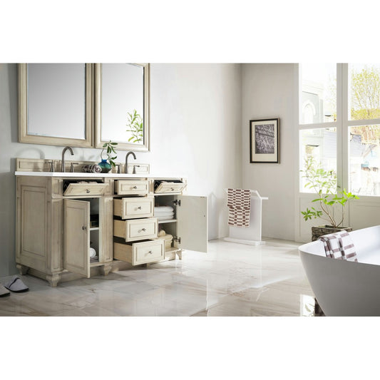 Bristol 60" Double Vanity, Vintage Vanilla, w/ 3 CM Classic White Quartz Top