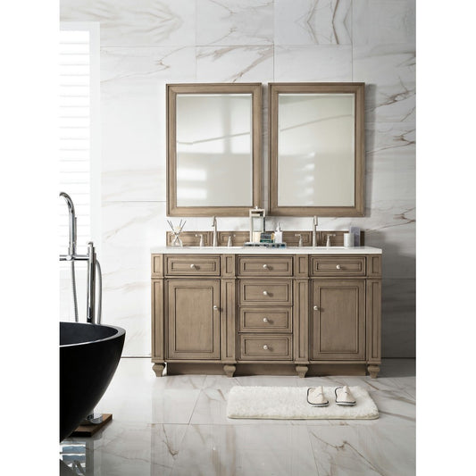 Bristol 60" Double Vanity, Whitewashed Walnut, w/ 3 CM Eternal Serena Quartz Top