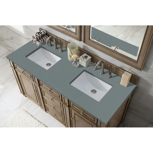 Bristol 60" Double Vanity, Whitewashed Walnut, w/ 3 CM Gray Expo Quartz Top