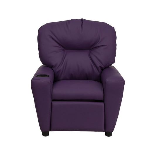 Contemporary Purple Vinyl Kids Recliner with Cup Holder
