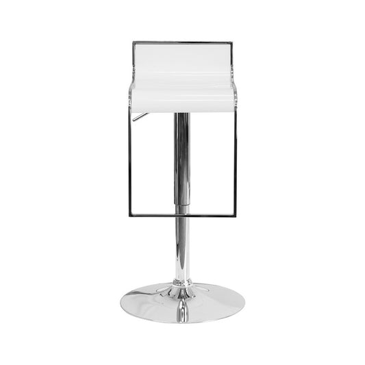 Contemporary White Plastic Adjustable Height Barstool with Chrome Drop Frame