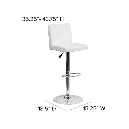 Contemporary White Vinyl Adjustable Height Barstool with Panel Back and Chrome Base