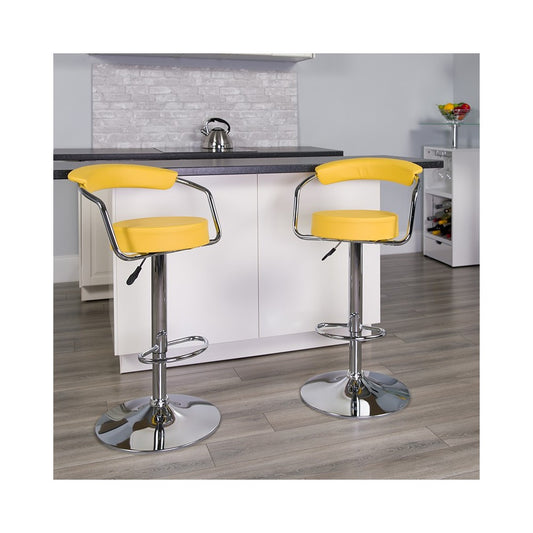 Contemporary Yellow Vinyl Adjustable Height Barstool with Arms and Chrome Base
