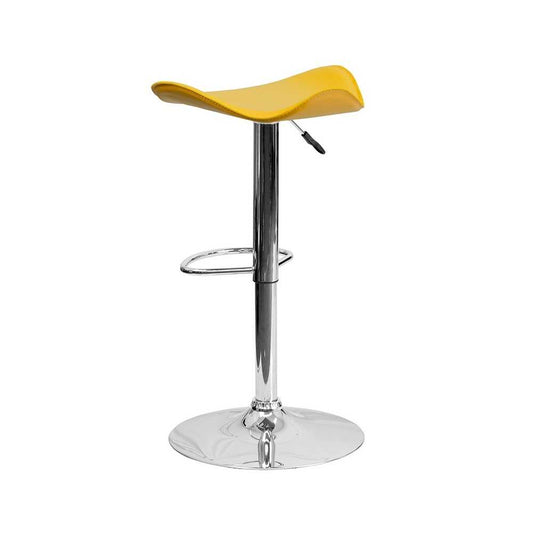 Contemporary Yellow Vinyl Adjustable Height Barstool with Wavy Seat and Chrome Base