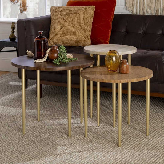Darcy 3-Piece Round Nesting Coffee Table Set - Dark Walnut