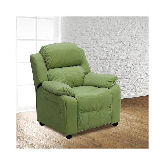 Deluxe Padded Contemporary Avocado Microfiber Kids Recliner with Storage Arms
