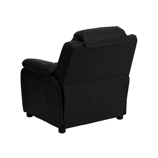 Deluxe Padded Contemporary Black LeatherSoft Kids Recliner with Storage Arms