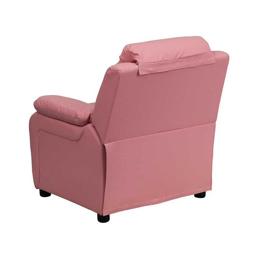 Deluxe Padded Contemporary Pink Vinyl Kids Recliner with Storage Arms