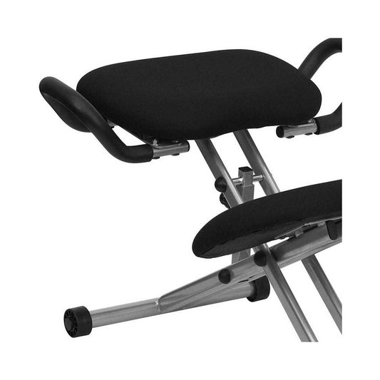 Ergonomic Kneeling Office Chair with Handles in Black Fabric