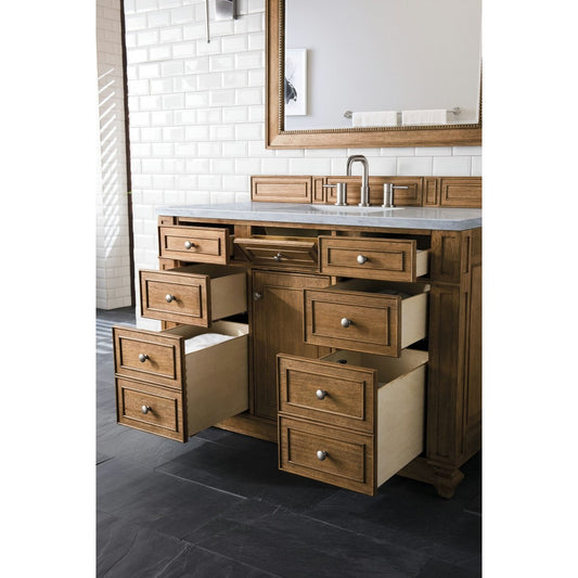 Bristol 48" Single Vanity, Saddle Brown, w/ 3 CM Carrara Marble Top