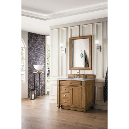 Bristol 36" Single Vanity, Whitewashed Walnut, w/ 3 CM Carrara Marble Top